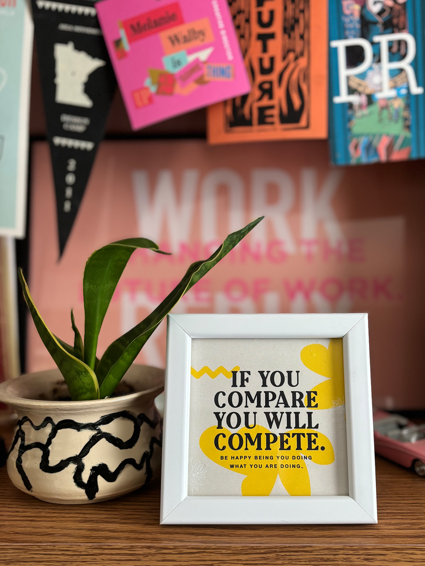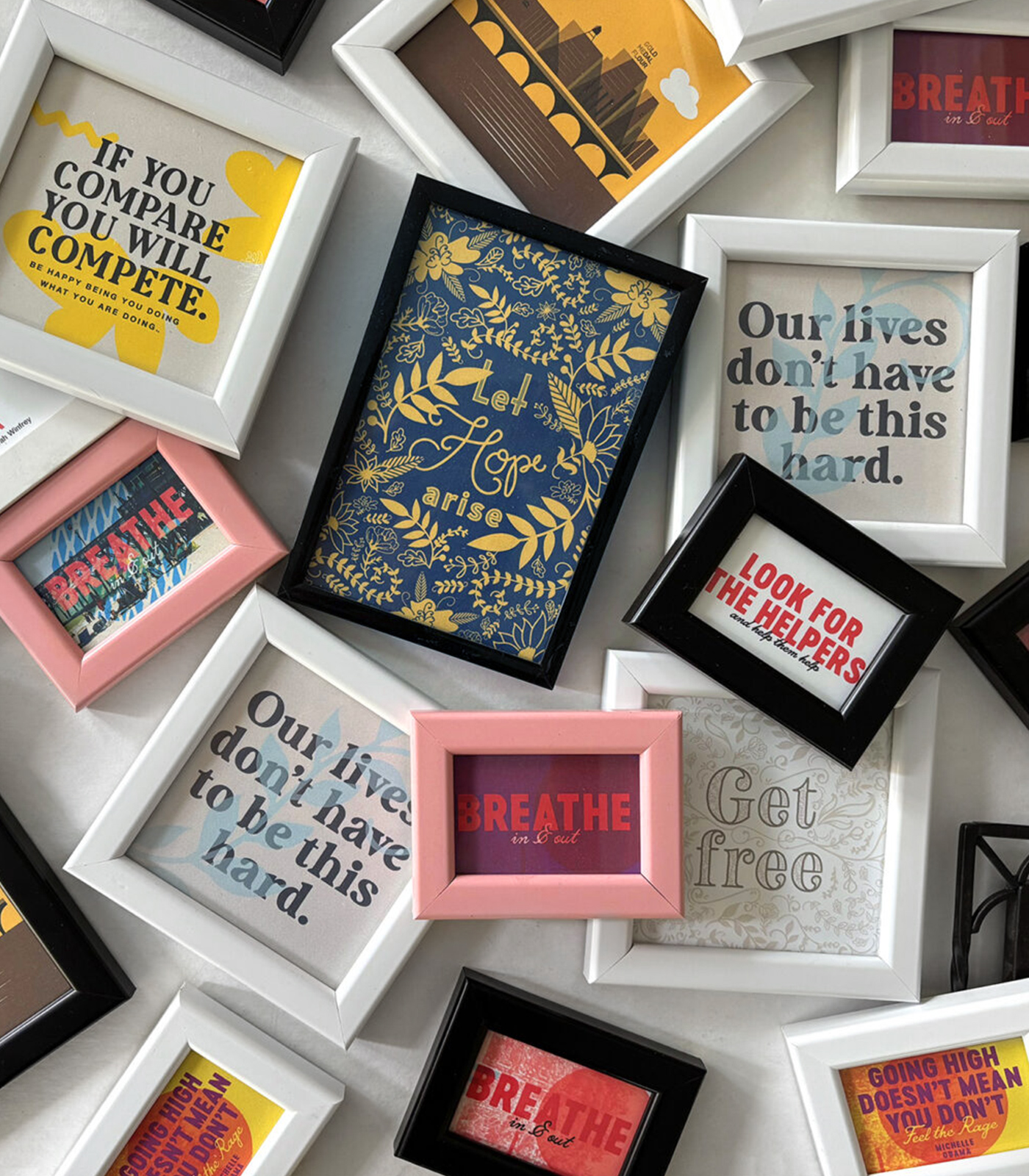 Smaller-sized prints available in assorted frames, contemplative journals, long-form writing on prints designed to challenge harmful narratives, and a monthly calendar featuring a different illustrator every month.